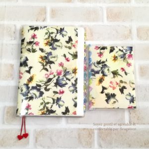 2018年版はブルーを基調とした友禅和紙を使って、頭が冴える色使いを意識しましたが、2019年版は、リバティーのクロスに薄手の接着芯を貼って、女性らしく彩豊かな色使いを意識しています。